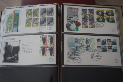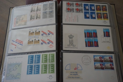 Nederland verzameling FDC's met blokken van 4 in album