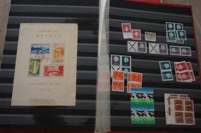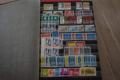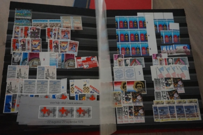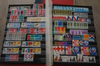 Insteekboek met verzameling postzegels Nederland, dubbelen postfris en ook Japan blok 2 gestempeld (licht beschadigd, Michel € 120).