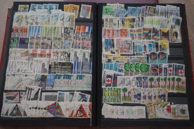 Dik insteekboek met verzameling dubbele postzegels Nederland gestempeld met kans op leuke stempels.