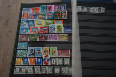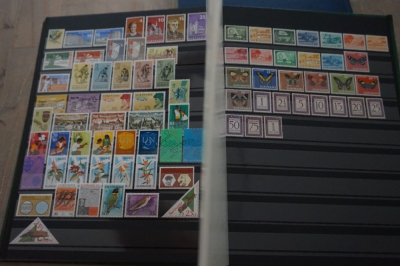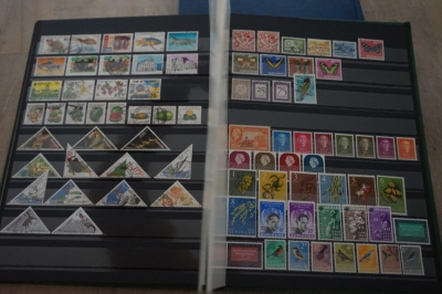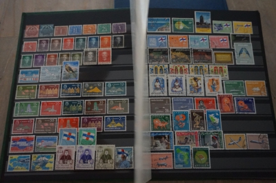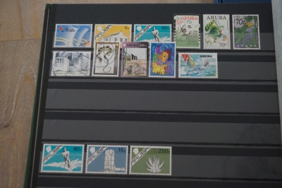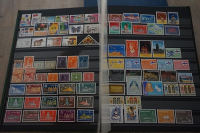 Insteekboek met verzameling postzegels Nederlandse Antillen en Suriname.