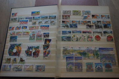 Insteekboek met verzameling postzegels Nieuw Zeeland.