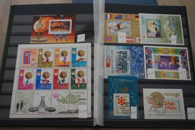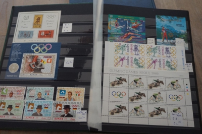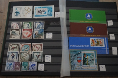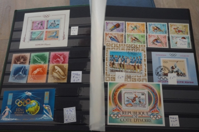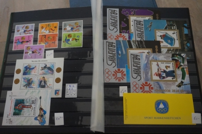 Insteekboek met verzameling postzegels Olympische Spelen.