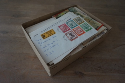 Doos met partij brieven en poststukken Oostenrijk met leuke variatie en weinig FDC's.