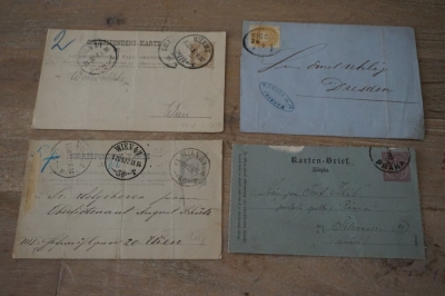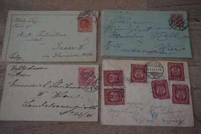Oostenrijk partij oude brieven en poststukken incl. censuur, fraaie stempels, oude ansichtkaarten, etc.