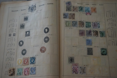 Oud wereldalbum met verzameling postzegels