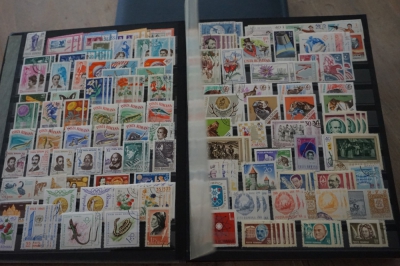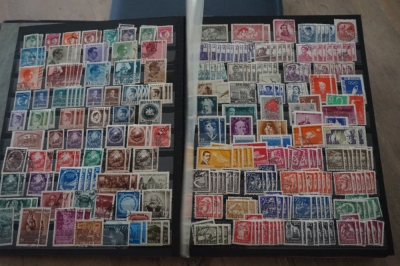 Insteekboek met verzameling postzegels Roemeniƫ en Bulgarije.