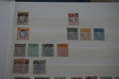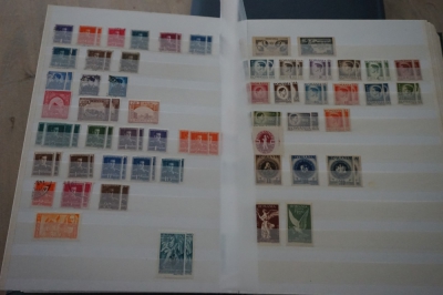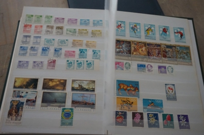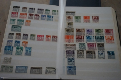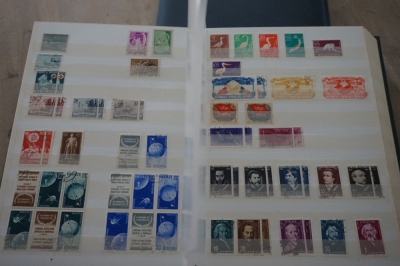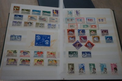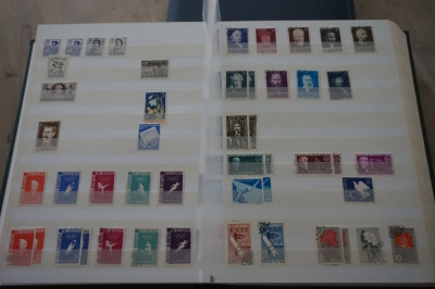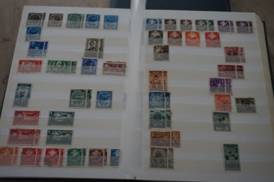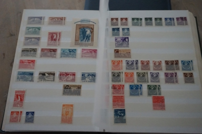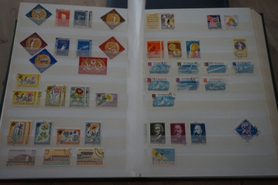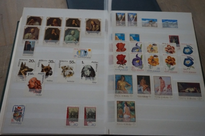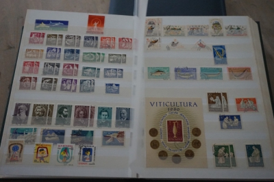 Dik insteekboek met keurige verzameling postzegels Roemenië tot 1973 incl. hogere waarden zoals blok 101 en 103 (€ 120).