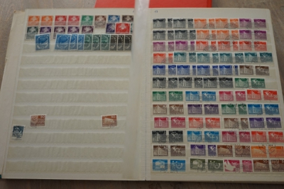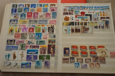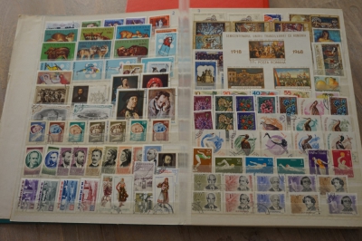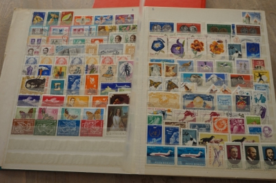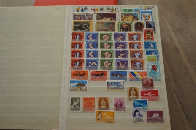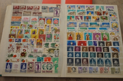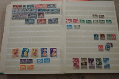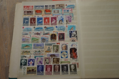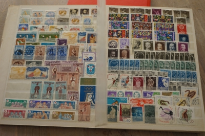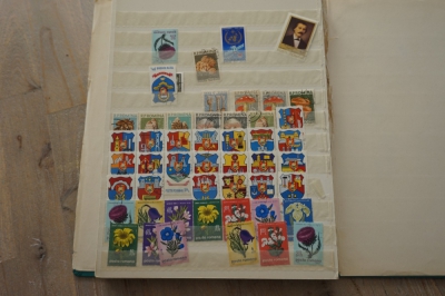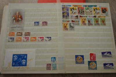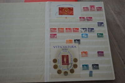 Insteekboek (bladen losliggend) met verzameling postzegels Roemeniƫ.