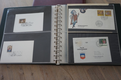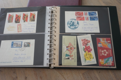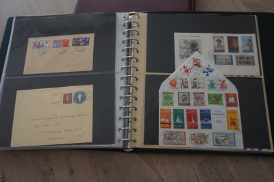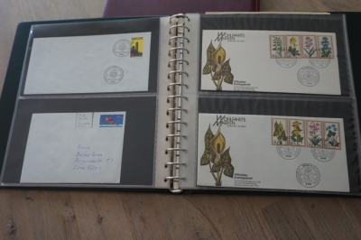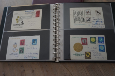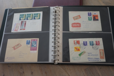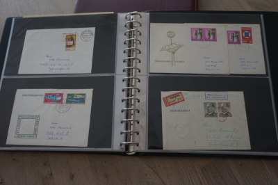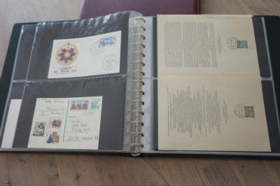 Luxe Safe band met 17 bladen voor brieven, met verzameling ong. 70 poststukken meest eenvoudig.