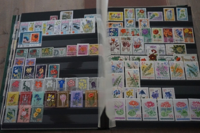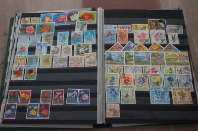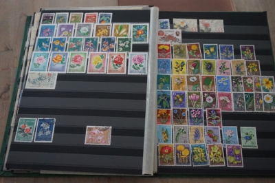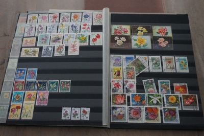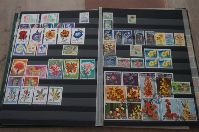 Thema bloemen verzameling postzegels in insteekboek