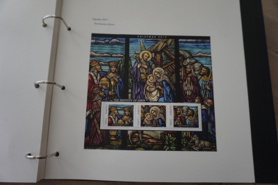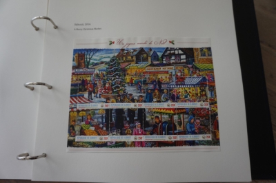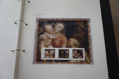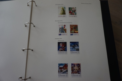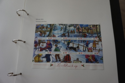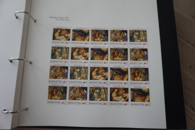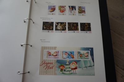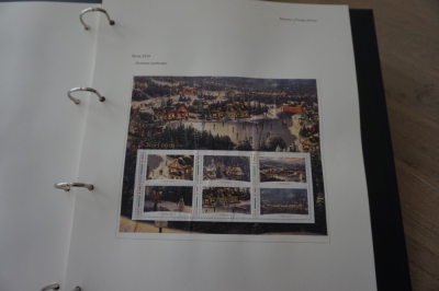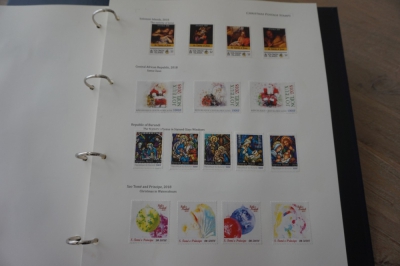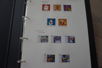 Album met verzameling ong. 175 postzegels en velletjes thema kerst uit 2016/17 en iets 2018. De postzegels zijn op de bladen geplakt.
