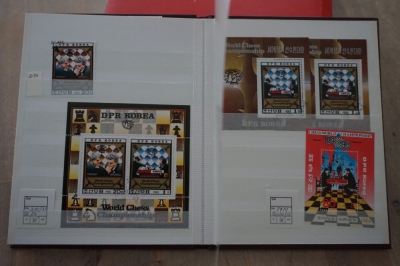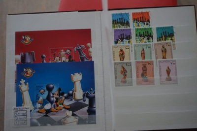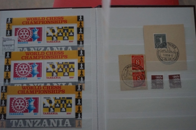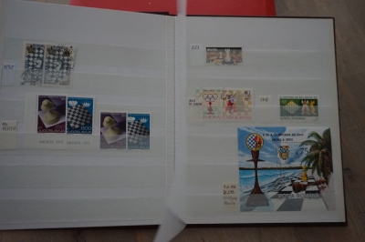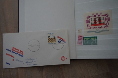 Kleiner insteekboekje met verzameling postzegels motief schaken.