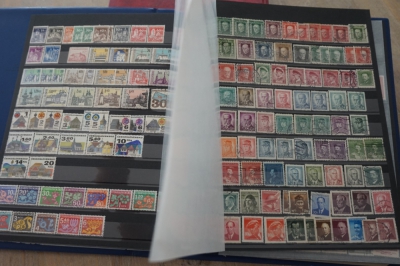 Ringband met forse verzameling postzegels Tsjechoslowakije.