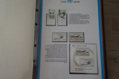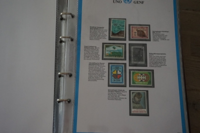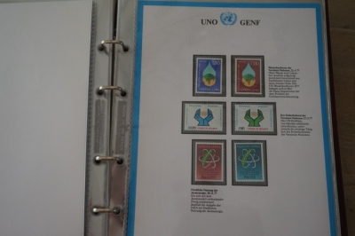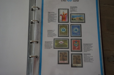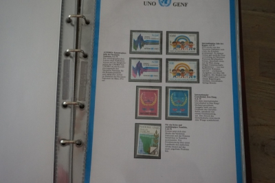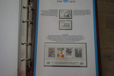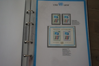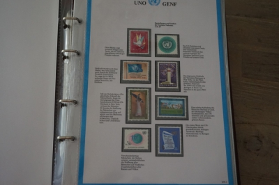 Verenigde Naties Geneve verzameling postzegels, velletjes, beurskaarten en FDC's in 3 albums