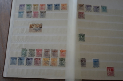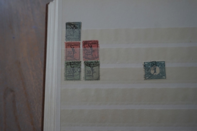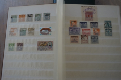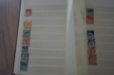 Middelformaat insteekboek met verzameling postzegels divers.