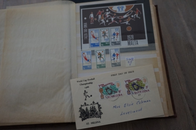 Wereld divers o.a. thema voetbal verzameling postzegels in album