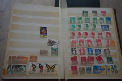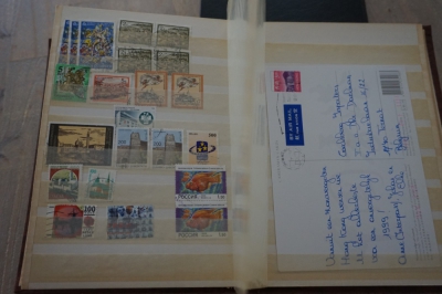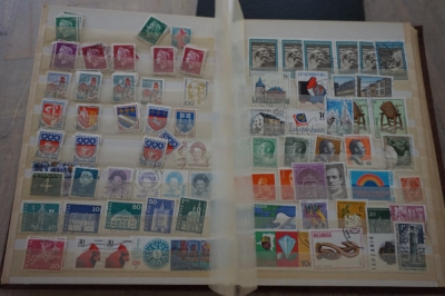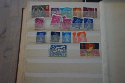 Middelformaat insteekboek met verzameling postzegels divers.