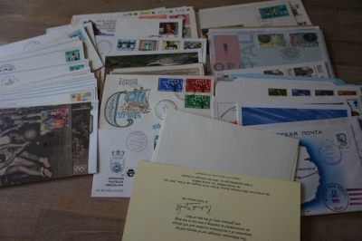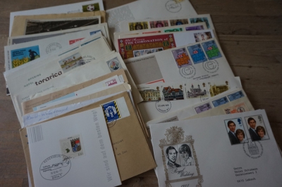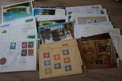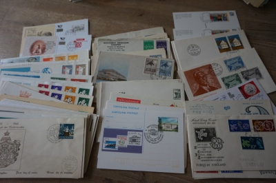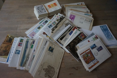 Doos met partij ong. 500 FDC's en poststukken divers.