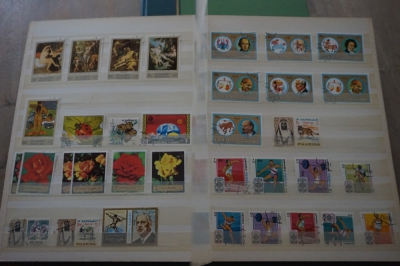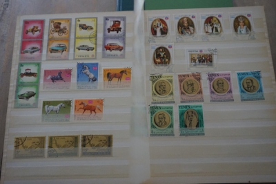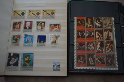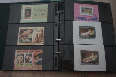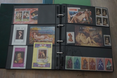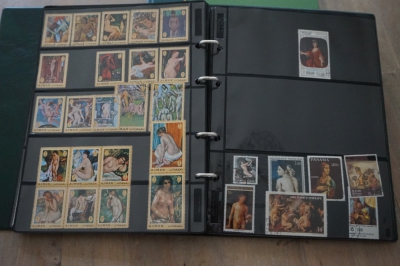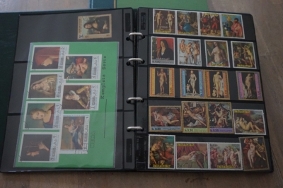 Wereld divers verzameling postzegels in 2 albums, veel Arabische staten, kunst en naakt