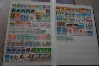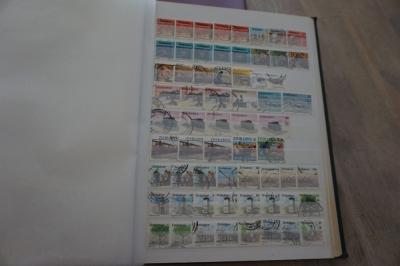 Wereld divers verzameling postzegels in album, o.a. Indonesië, Japan en China