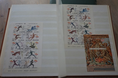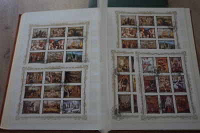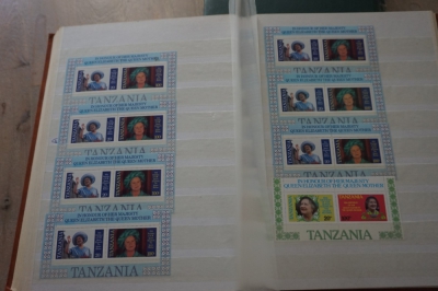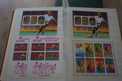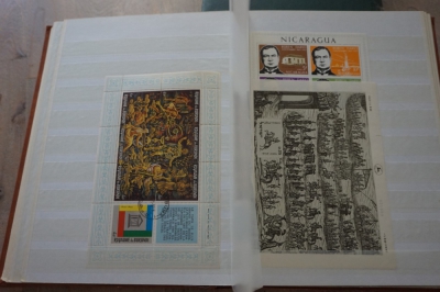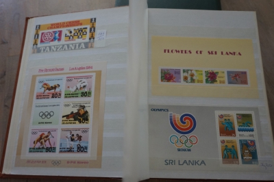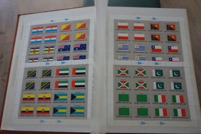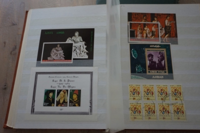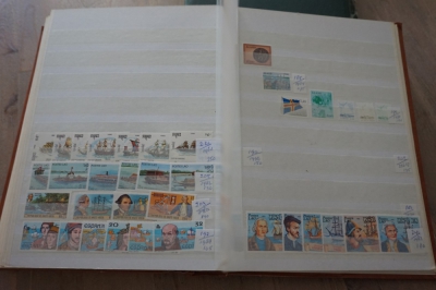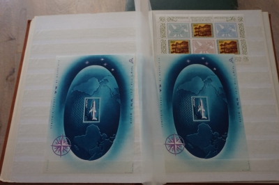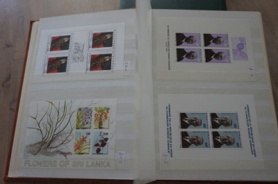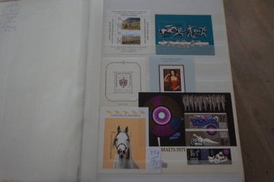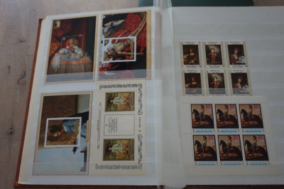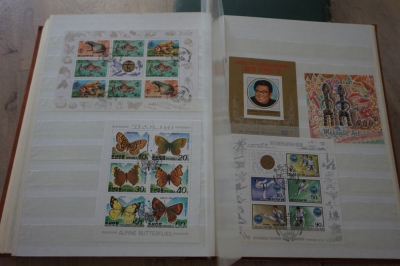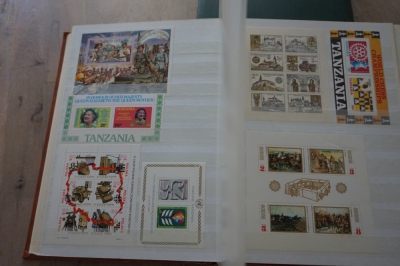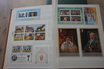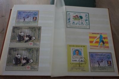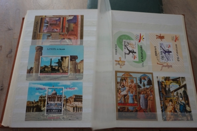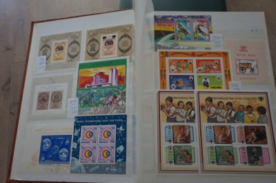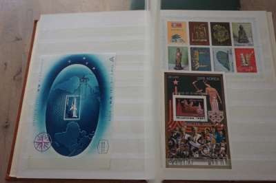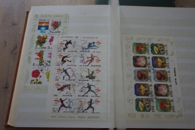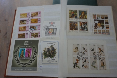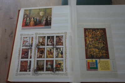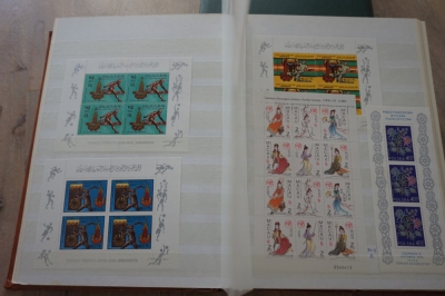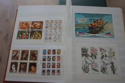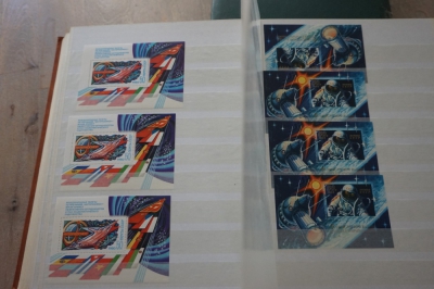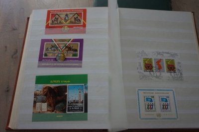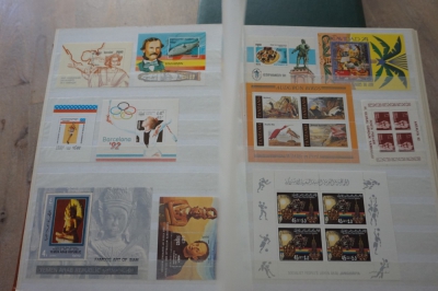 Dik insteekboek met verzameling velletjes postzegels divers.