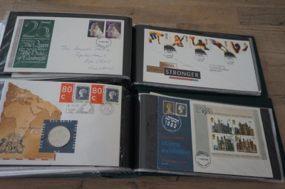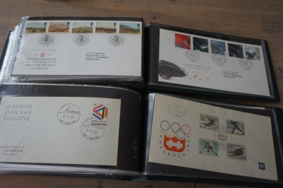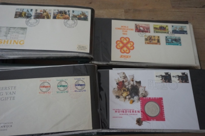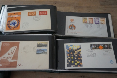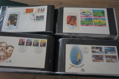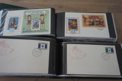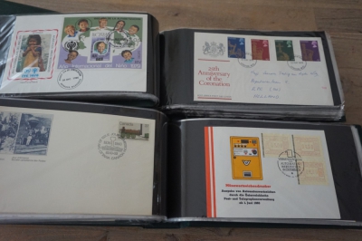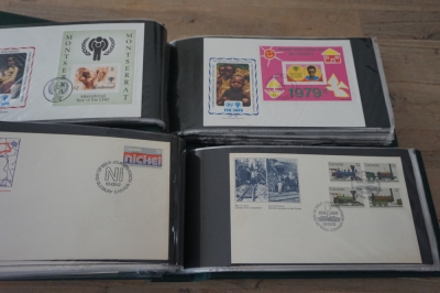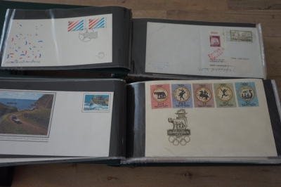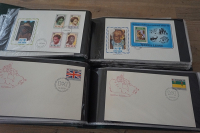 Wereld FDC en cover verzameling in 5 albums + 2 lege brievenalbums