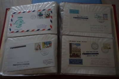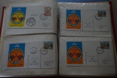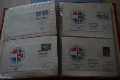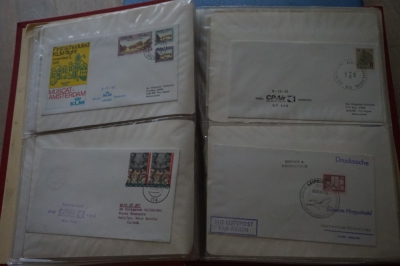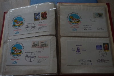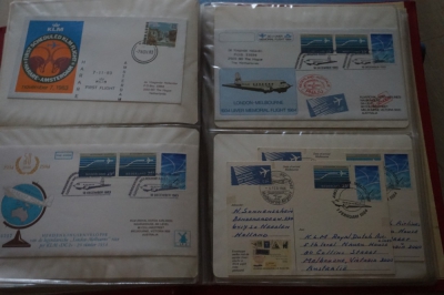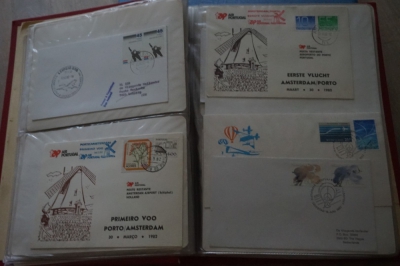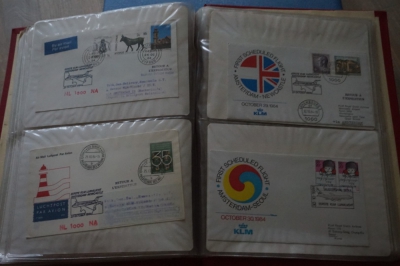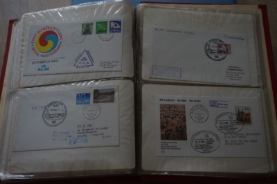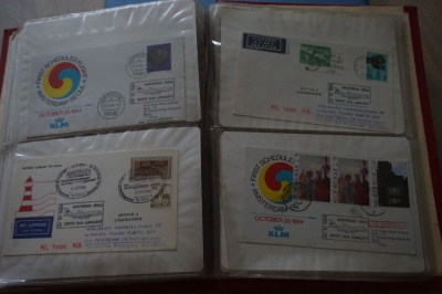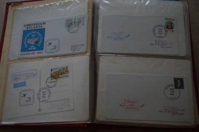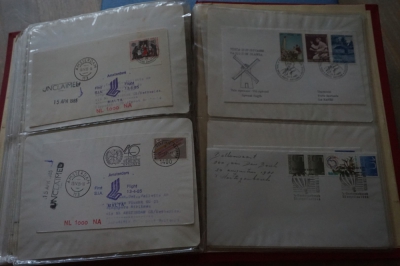 Album met verzameling ong. 125 eerstevlucht enveloppen waarbij veel van of naar Nederland.