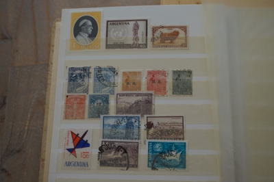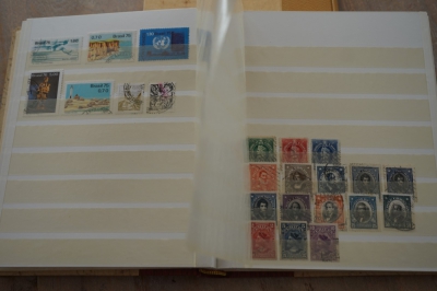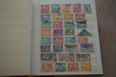 Middelformaat insteekboek met verzameling postzegels Zuid Amerika.
