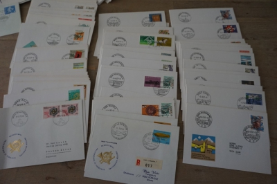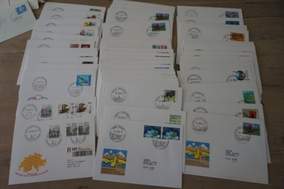 Partij ruim 700 enveloppen Zwitserland met speciale stempels.
