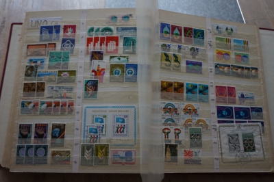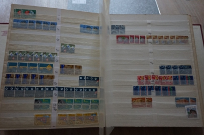 Dik winkel insteekboek met verzameling postzegels Zwitserland.