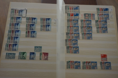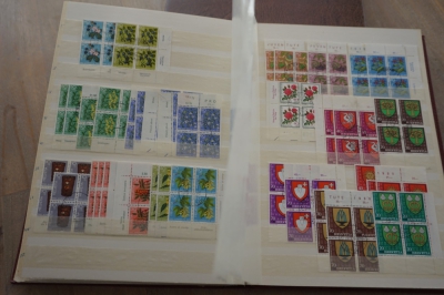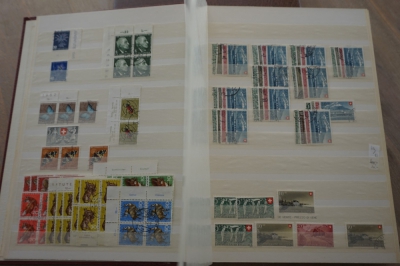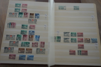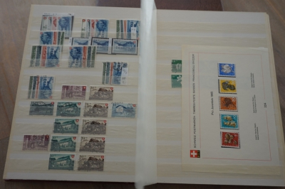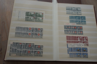 Insteekboek met verzameling postzegels Zwitserland met o.a. veel dubbele toeslagseries.
