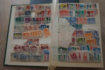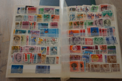 Insteekboekje volgepropt met verzameling postzegels Zwitserland.